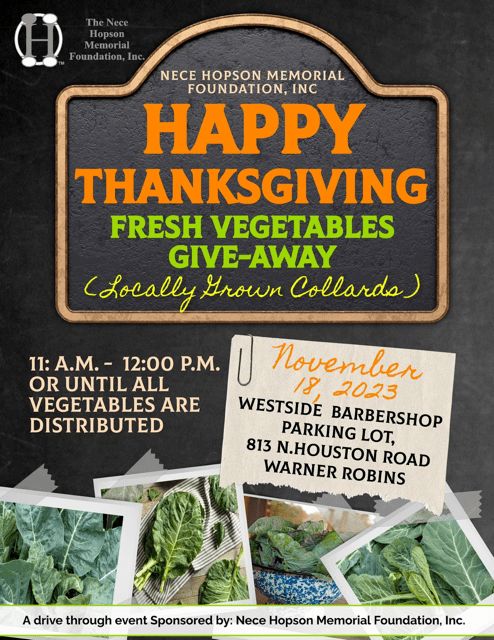- Thanksgiving Outreach: Distributed bags of fresh vegetables (collard greens) to 225 families of the community.
